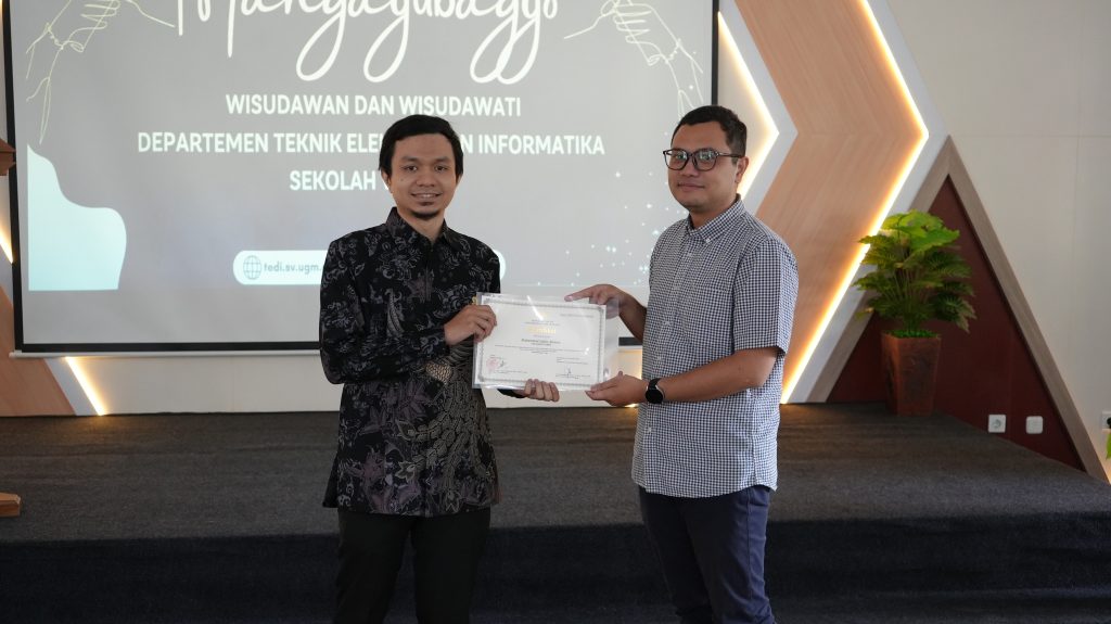 Dalam acara tersebut hadir Dekan Sekolah Vokasi UGM, Prof. Dr.-Ing. Ir. Agus Maryono, IPM., ASEAN Eng., Sekretaris Departemen Teknik Elektro dan Informatika, Ketua Program Studi, serta orang tua para wisudawan. Acara berlangsung selama kurang lebih dua jam, dipenuhi dengan rasa syukur, haru, dan kebahagiaan yang dirasakan oleh seluruh peserta.
